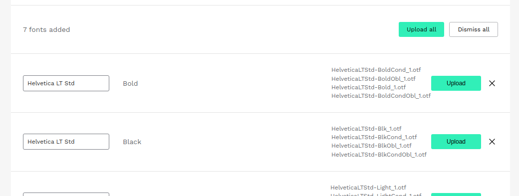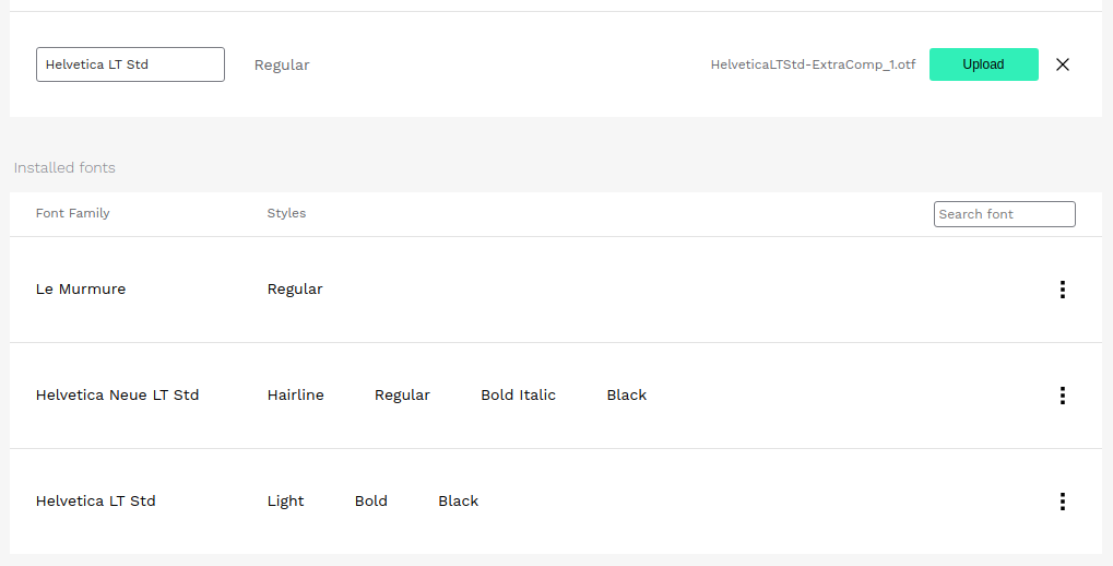 - Once ready, press upload. That's it. The font will be available at the font list of this team’s files.